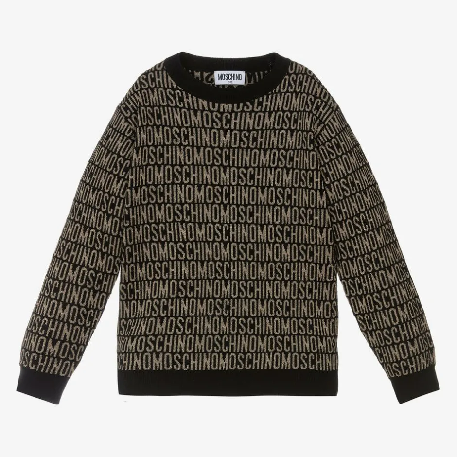 Moschino Kid-Teen Girls Black & Gold Jacquard Sweater