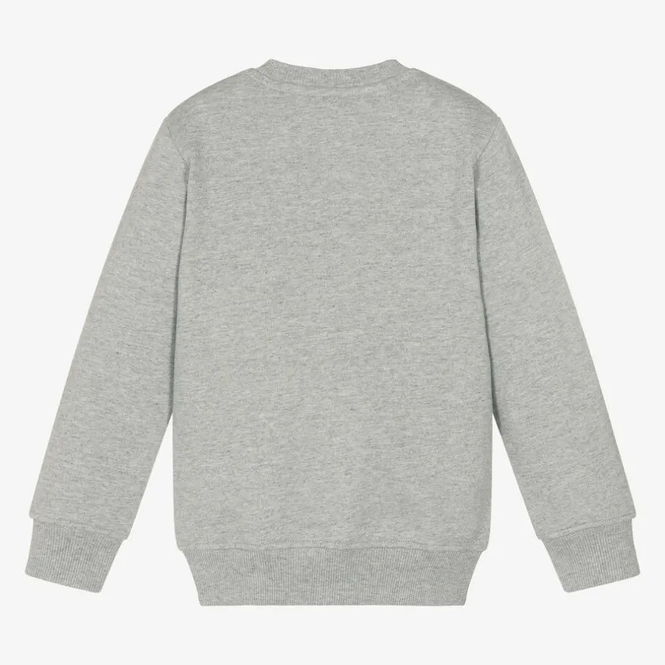 Grey sweatshirt for boys and girls from Moschino Kid-Teen, with a cosy, fleece feel underside. Super comfortable in soft, mid-weight cotton, this cool layering piece features two of the Italian label's loveable Moschino Teddy Bears in a sketch-effect design.