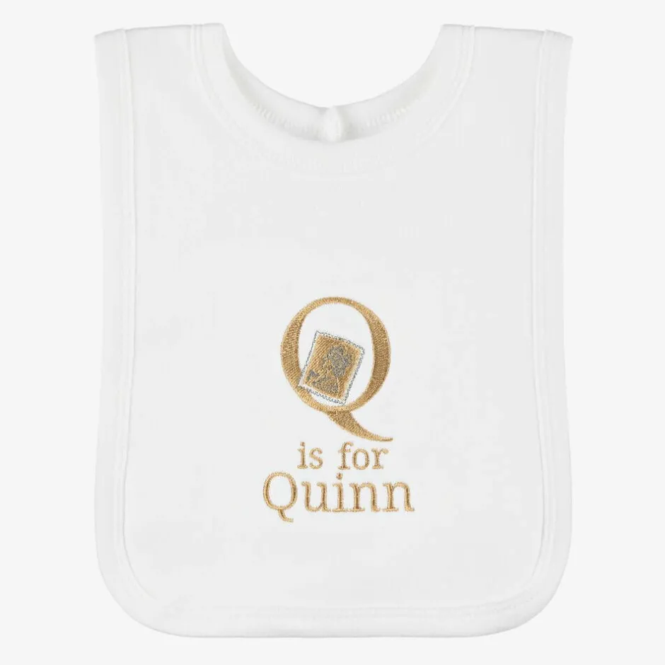 Paint My Dreams White Personalised 'Q' Initial Bib