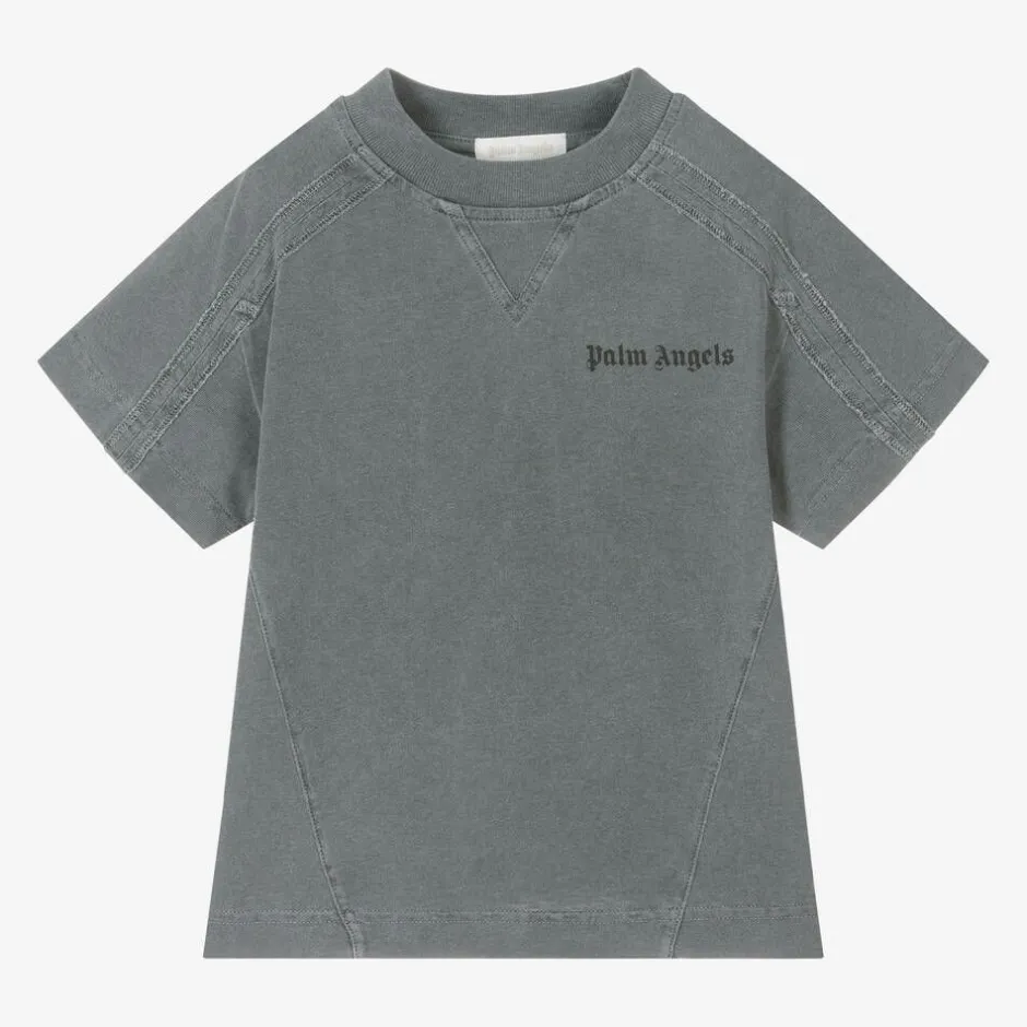 Palm Angels Boys Grey Cotton Shaded T-Shirt Online