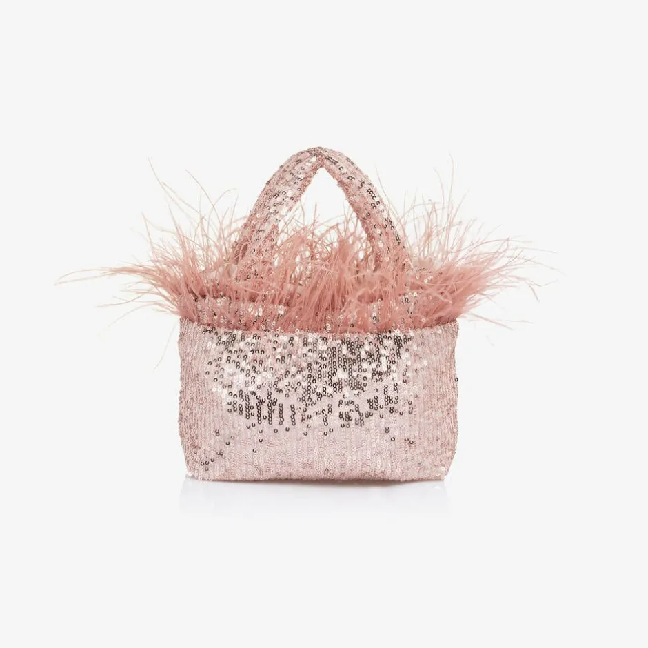 Patachou Girls Pink Sequin & Feather Handbag (20cm)