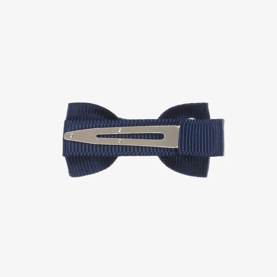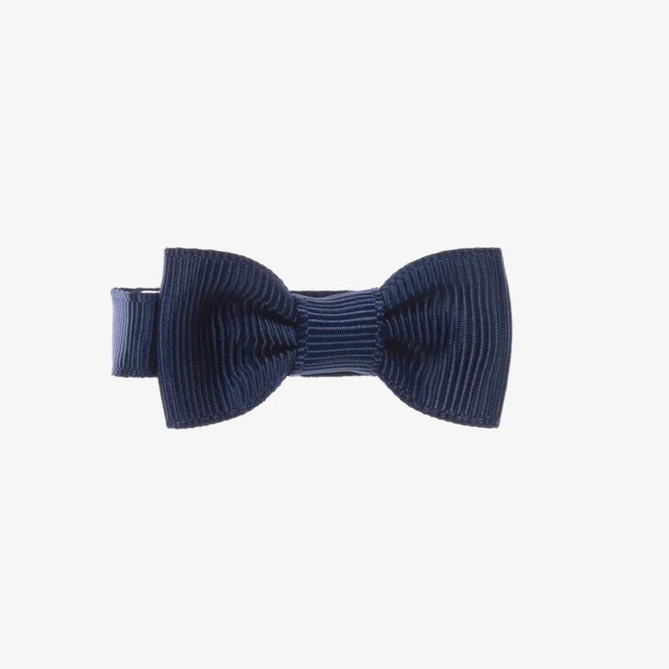 Girls navy blue handmade bow hair clip by Peach Ribbons. A finishing touch to an outfit, this sweet accessory is made in grosgrain ribbon and set on a metal clip.