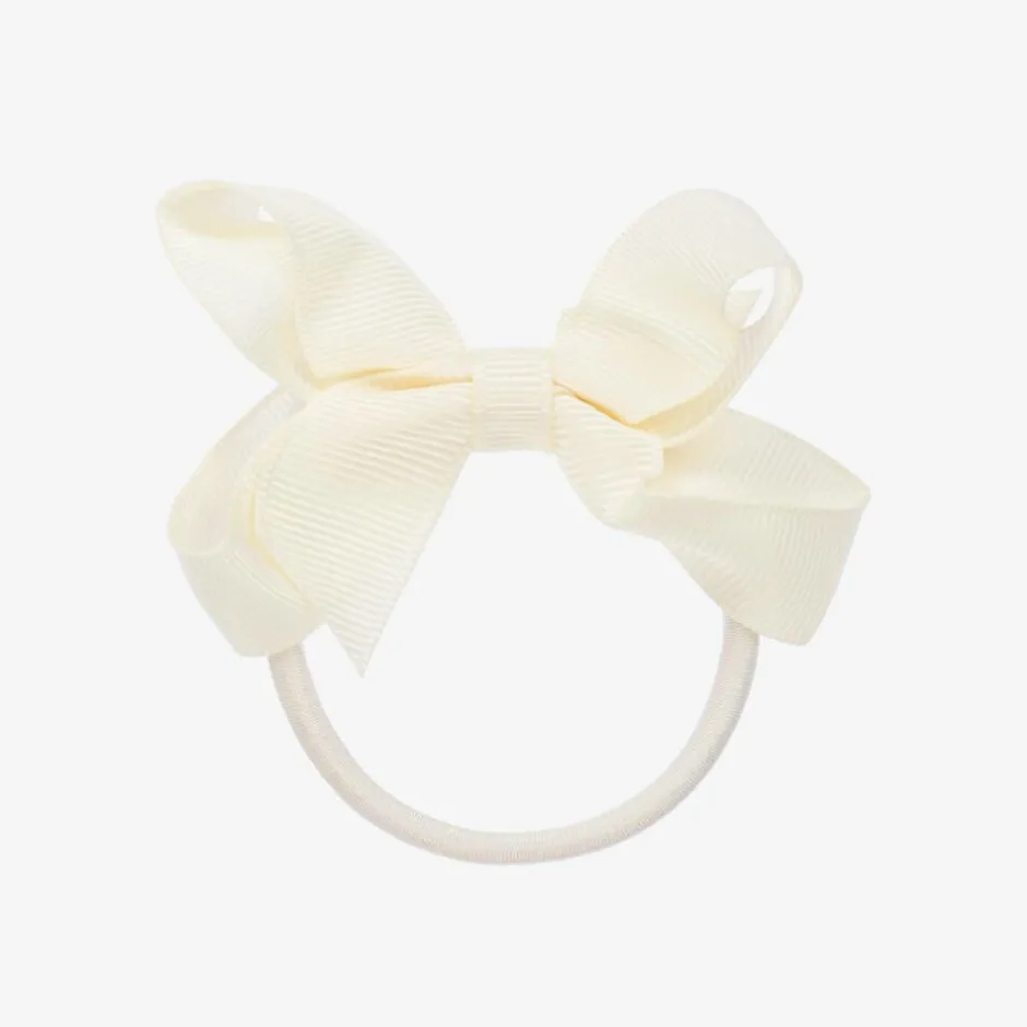 Girls classic hair elastic with a pretty ivory grosgrain ribbon bow by Peach Ribbons.