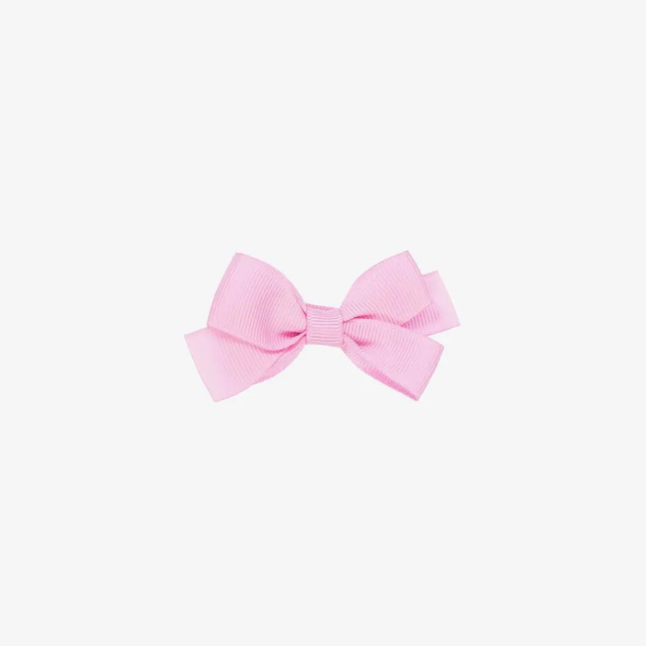 Girls pretty pink bow hair clip by Peach Ribbons. Lovely to complete an outfit, this hair accessory is made in grosgrain ribbon and set on a metal clip.