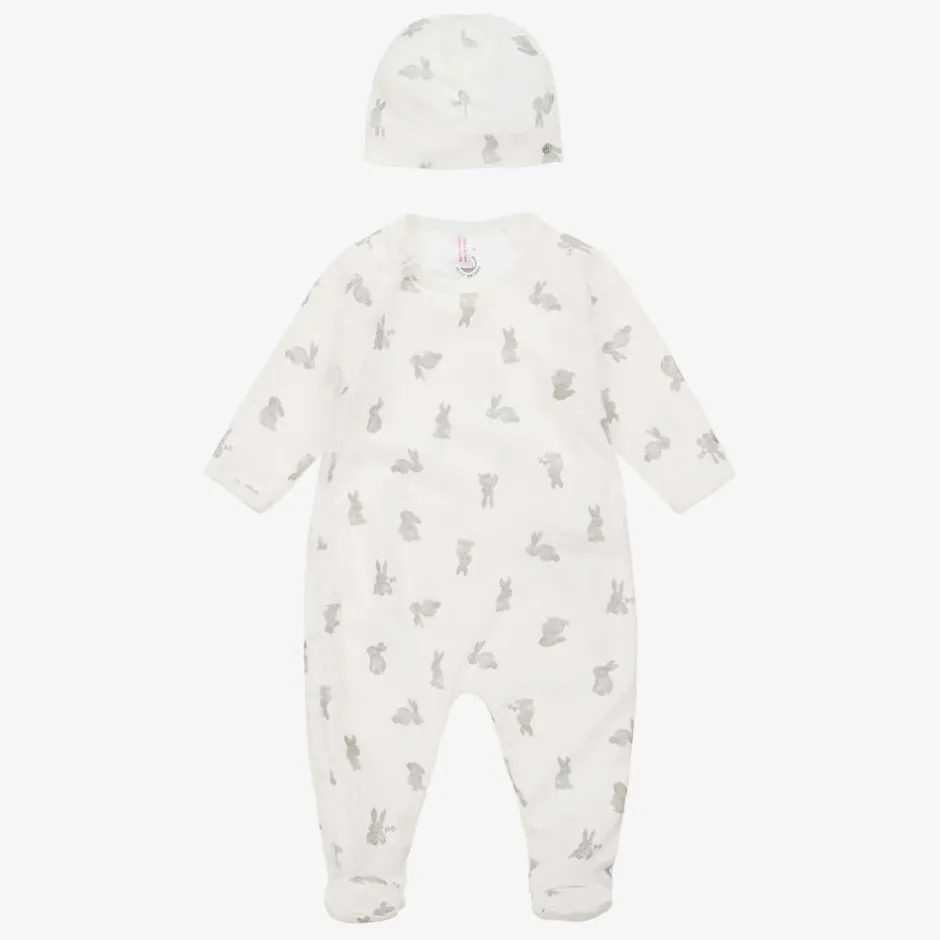 Petit Bateau Ivory Cotton Bunny Babygrow Set Outlet