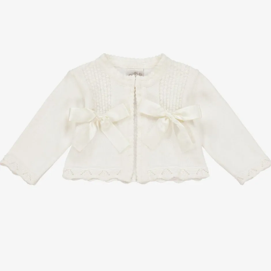 Pretty Originals Girls Ivory Cotton Knit Bow Cardigan