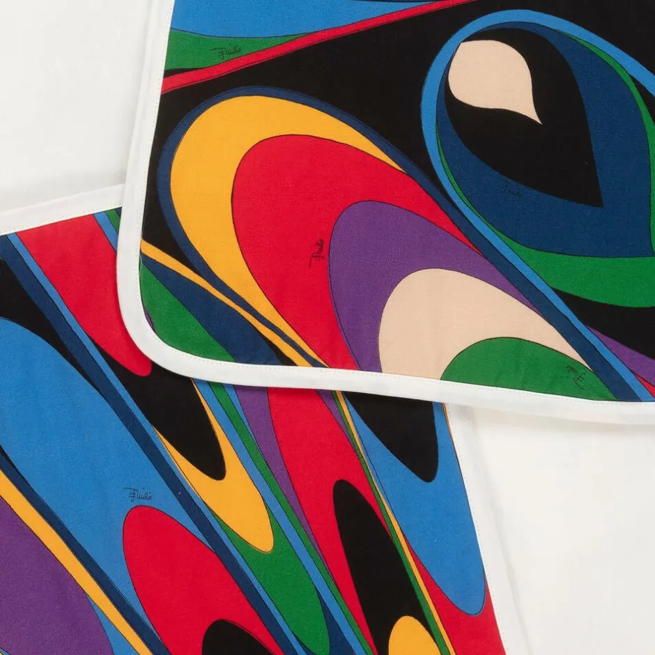 Patterned in the designer's signature Onde print, this black and purple cotton blanket for baby girls is made by luxury brand, PUCCI. Lightly padded for comfort, it provides a soft surface for baby to lay on and is ideal as a striking nursery accessory. The iconic print features bold, colourful swirls, synonymous with the brand.