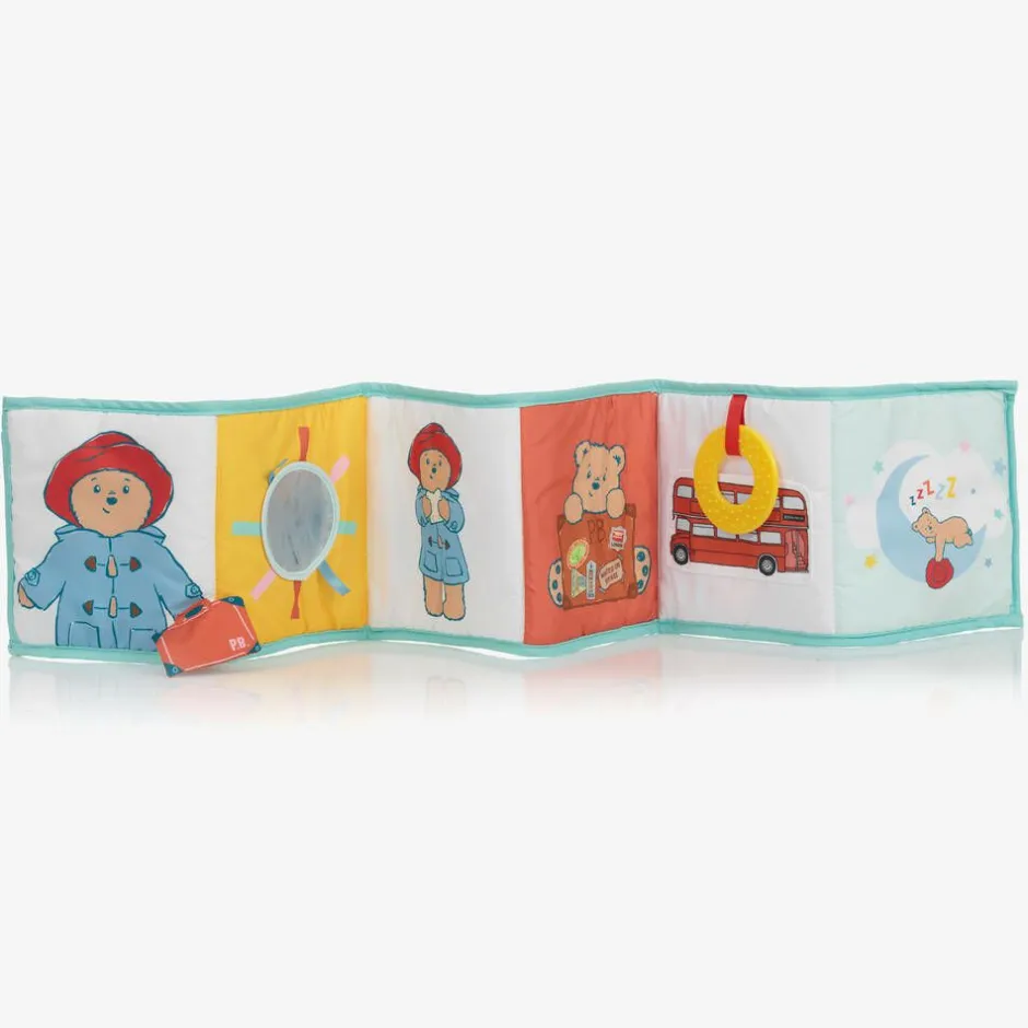 Adorable learning toy for little boys and girls by Rainbow Designs, illustrated with British teddy Paddington Bear storybook characters. This padded fabric booklet helps baby to explore and develop fine motor skills thanks to its baby-safe mirror, teether and crinkly flap, all in vibrant colours. It is great for tummy time and makes for a charming addition to their nursery.