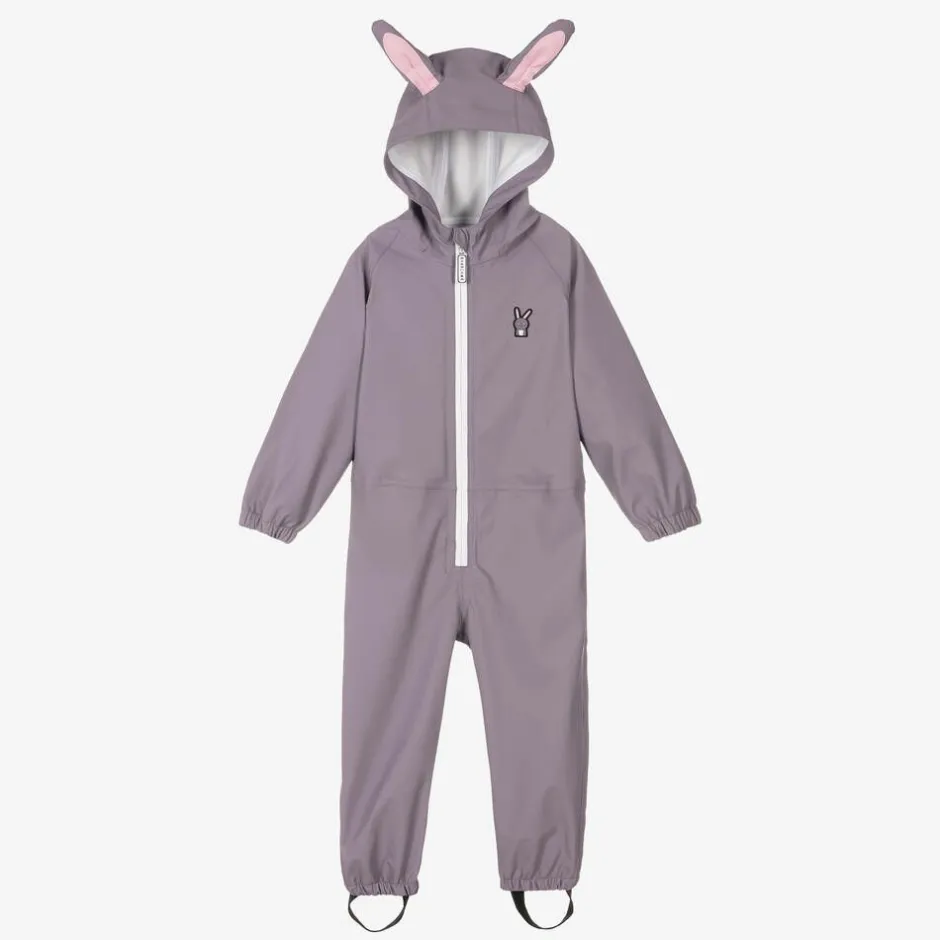 Roarsome Girls Purple Hop The Bunny Rainsuit Grey