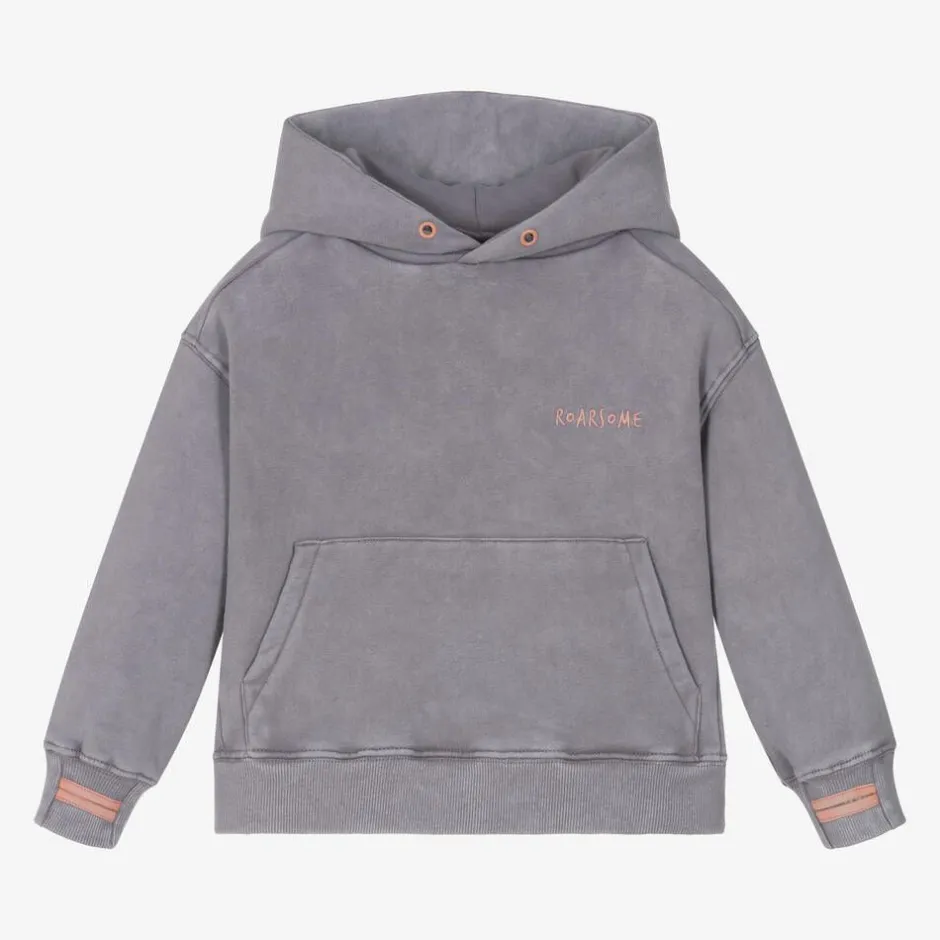 A cosy layer for their outdoor adventures, this lilac purple hooded sweatshirt for boys and girls is from Roarsome. Made in comfortable, mid-weight organic cotton jersey with a cosy fleece feel inside, it has a relaxed dropped shoulder fit, a pouch pocket and practical thumb hole cuffs. Cool eyelet details on the hood, an embroidered logo on the chest and a tonal print of Sparkle the Unicorn on the back complete the look.