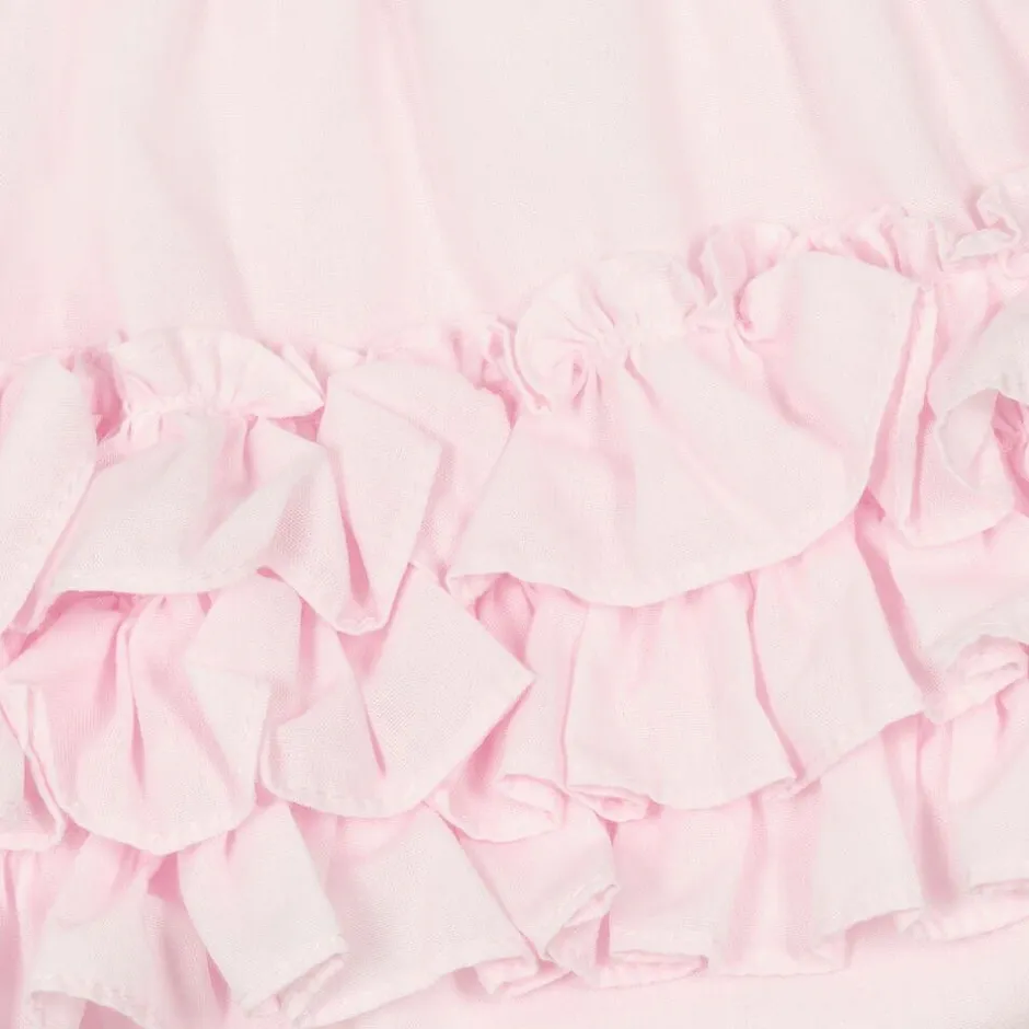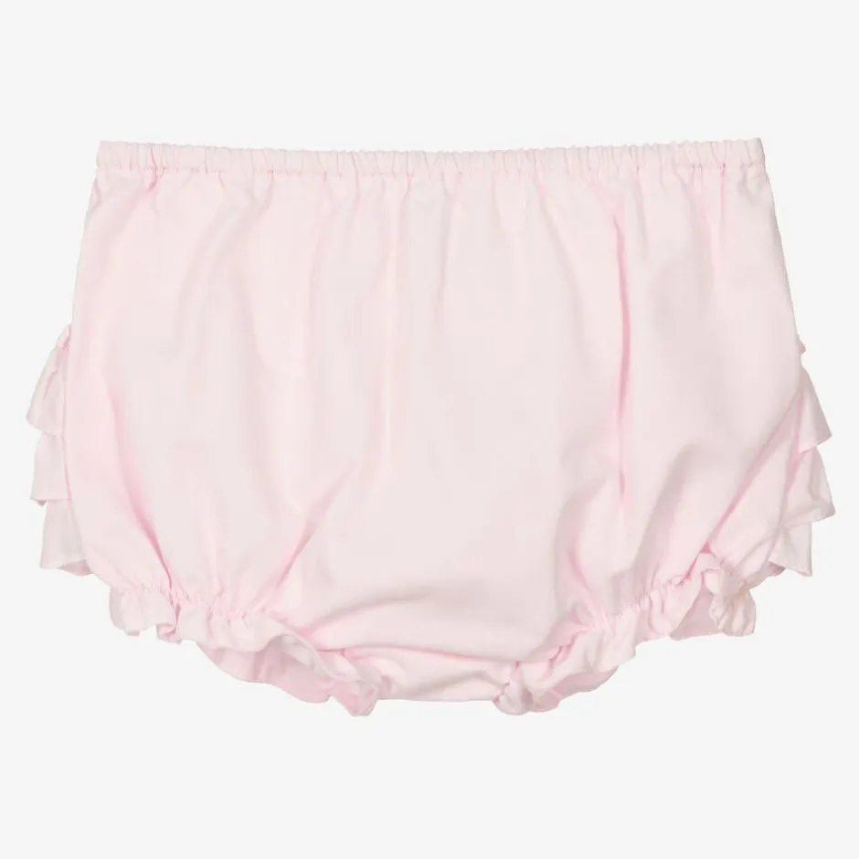 Baby girls sweet pale pink frilly pants by Sarah Louise. They are made from a double layer of lightweight polycotton, with cute tiered ruffles on the back.