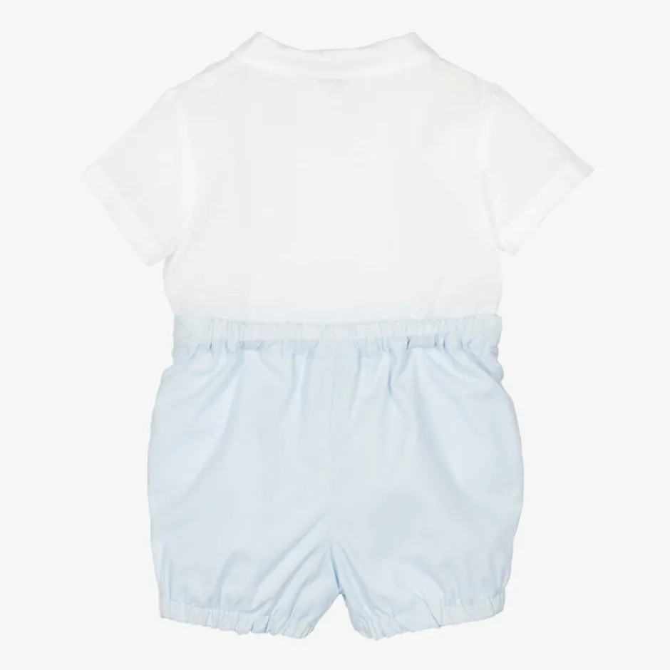Sarah Louise Boys White & Blue Cotton Buster Suit Discount