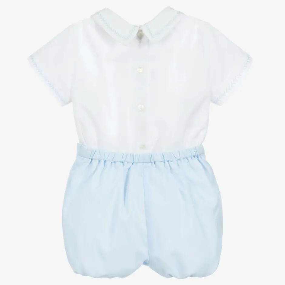 Sarah Louise Boys White & Blue Shorts Set Clearance
