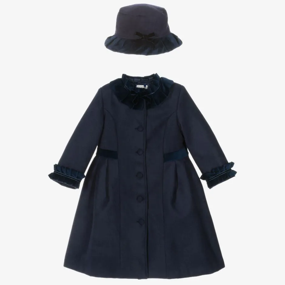 Sarah Louise Girls Navy Blue Felted Hat & Coat Set Clearance