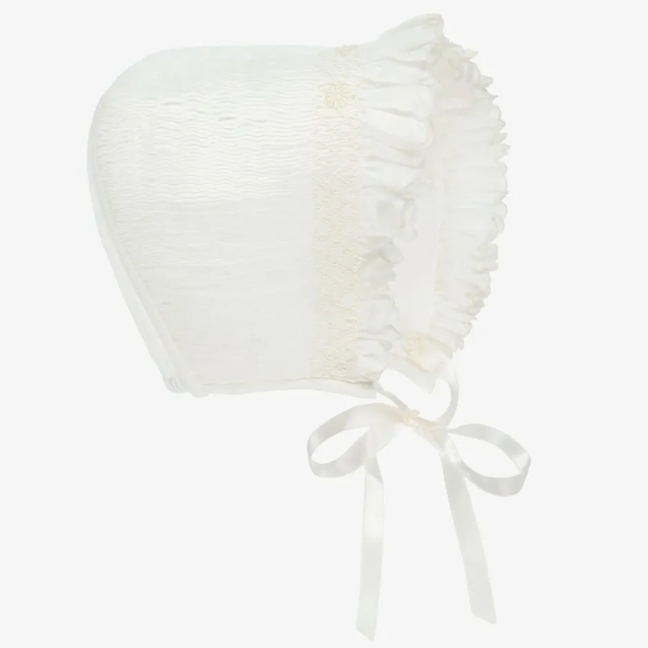 Sarah Louise Ivory Hand-Smocked Bonnet Discount