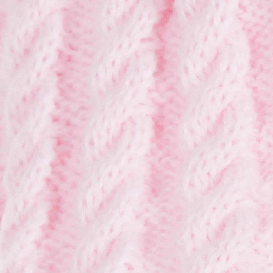 A pale pink beanie for little girls by Sätila of Sweden, in a lovely cable knit design. It has a giant pom-pom decoration and ear flaps with ties that secure under the chin to keep them super cosy. For extra comfort and warmth, the hat is lined in soft cotton jersey.