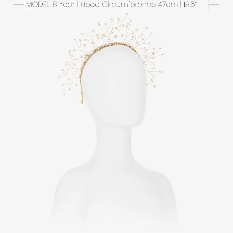 A beautiful gold filigree tiara for girls by Sienna likes to party. Decorated with sparkly crystal beads, this handmade 'Micheangela' hair accessory has a gold foil-wrapped metal band topped with delicate twisted wires.