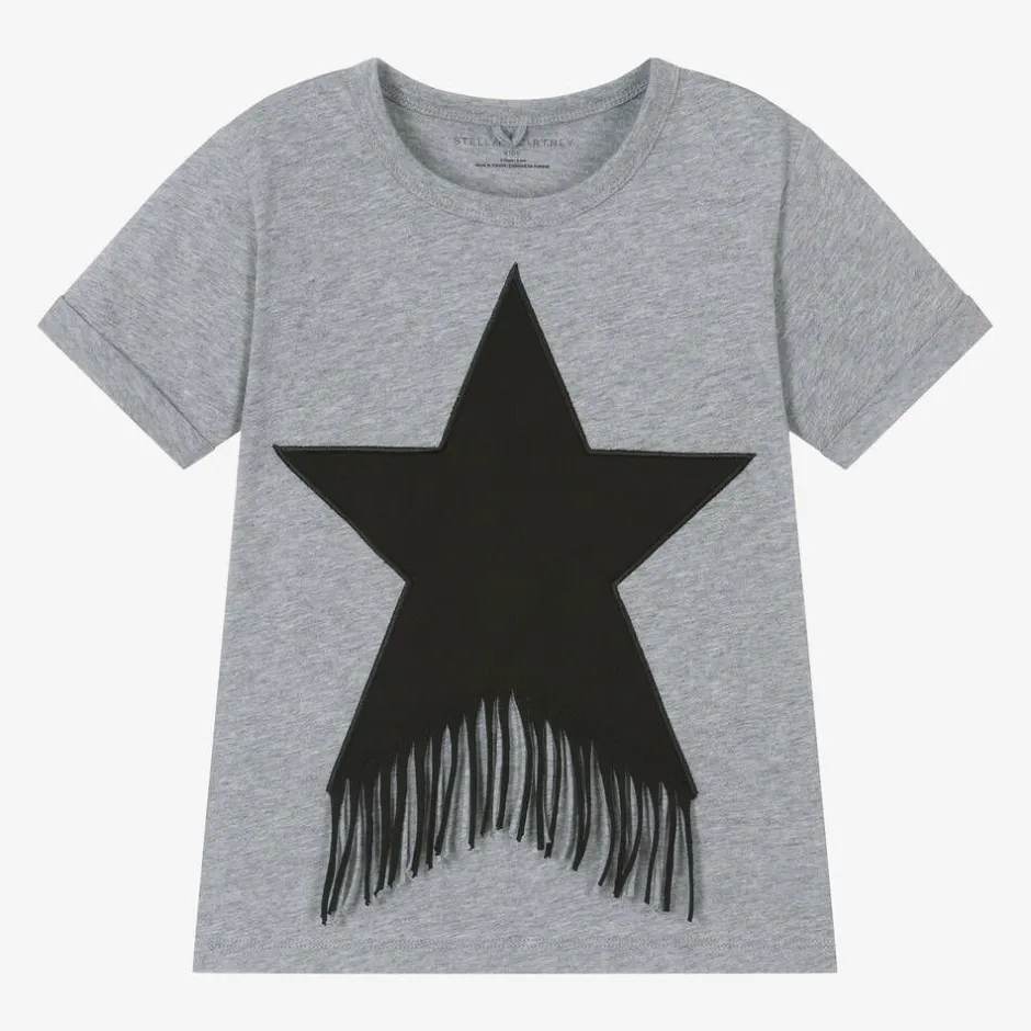 Stella McCartney Kids Girls Grey Organic Cotton Star T-Shirt New