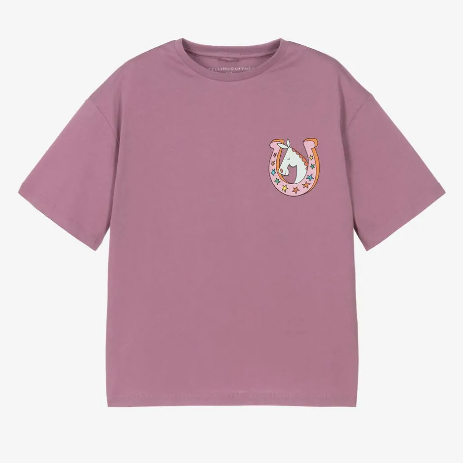 Stella McCartney Kids Girls Purple Cotton Horseshoe T-Shirt Online