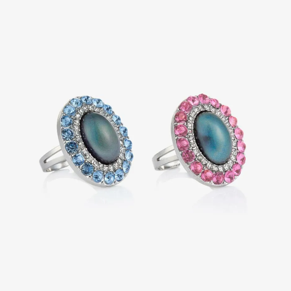 Presented in the brand's signature box, this pack of two faux jewel rings for girls is by Super Smalls. Lots of fun, the gems in the centre change colour depending on your mood, and there is a colour chart to identify what the colours mean. Beautiful and sparkly, there is one pink ring and one blue, ideal for coordinating with different outfits or sharing with friends.