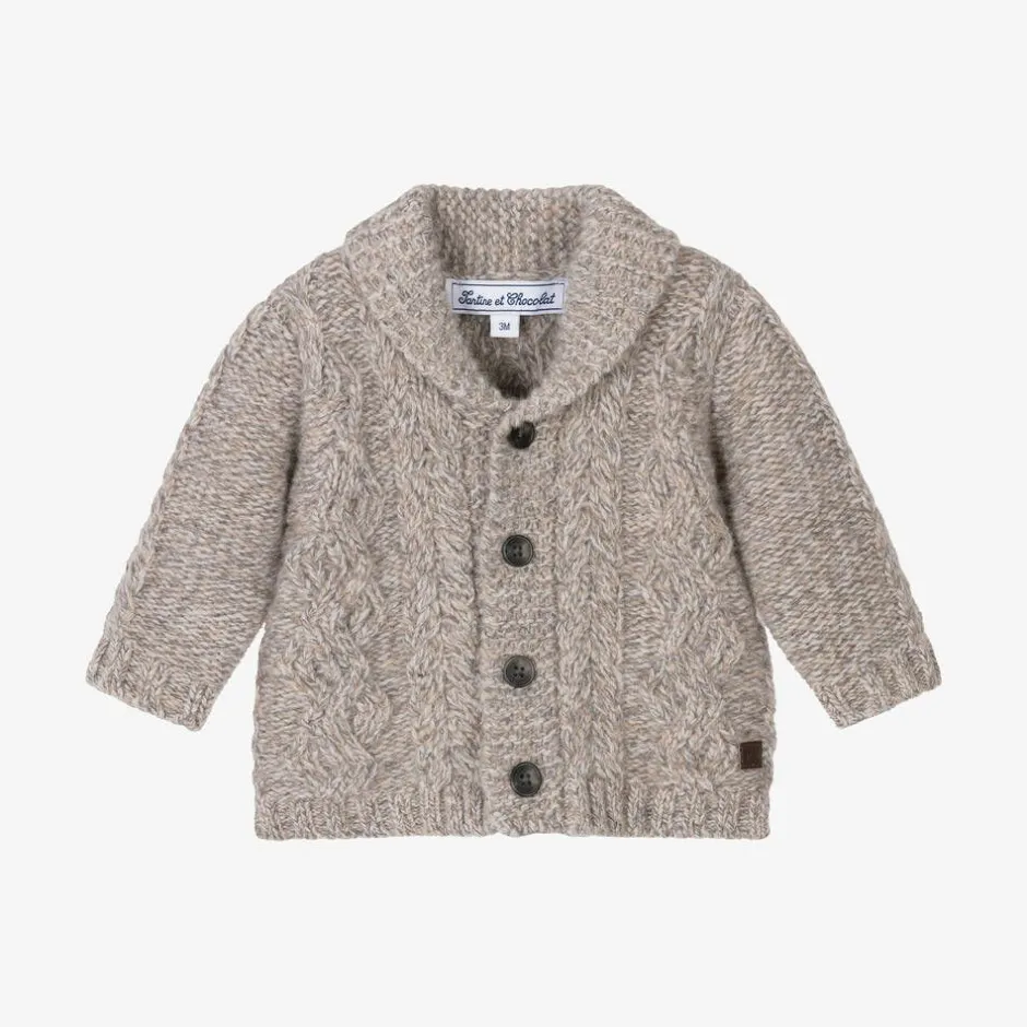 Tartine et Chocolat Baby Boys Beige Wool Cardigan New
