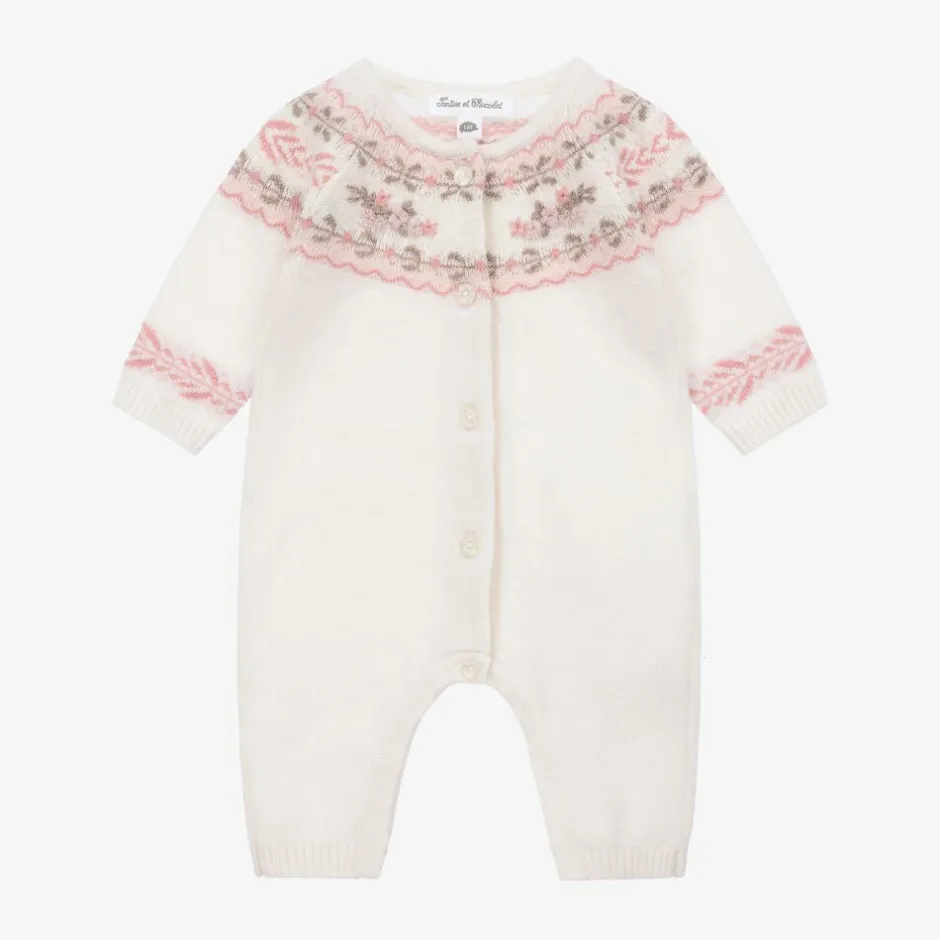 Tartine et Chocolat Baby Girls Ivory Floral Wool & Cashmere Romper New