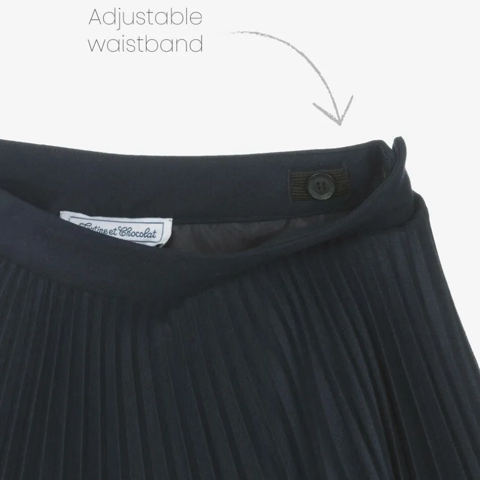 Tartine et Chocolat Girls Navy Blue Pleated Skirt Outlet