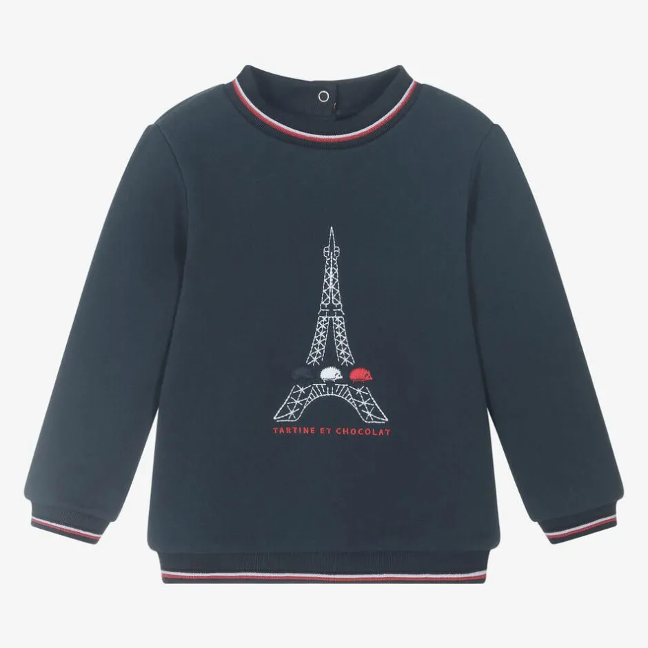 Tartine et Chocolat Navy Blue Cotton Eiffel Tower Sweatshirt Hot