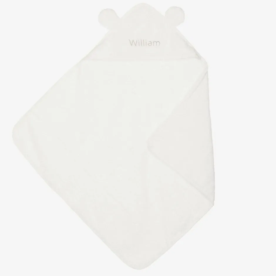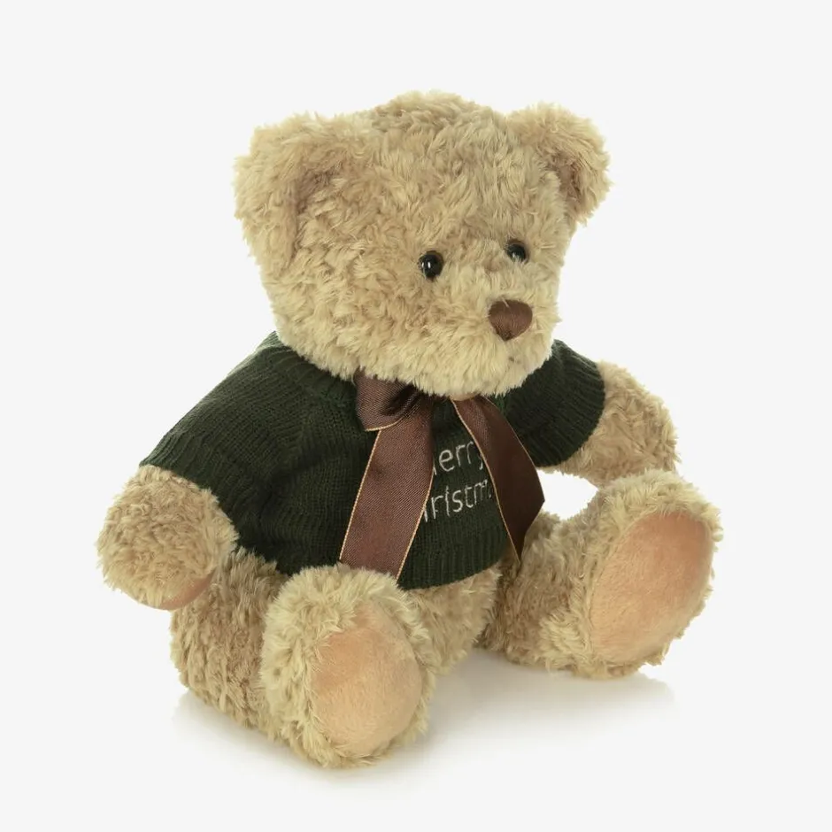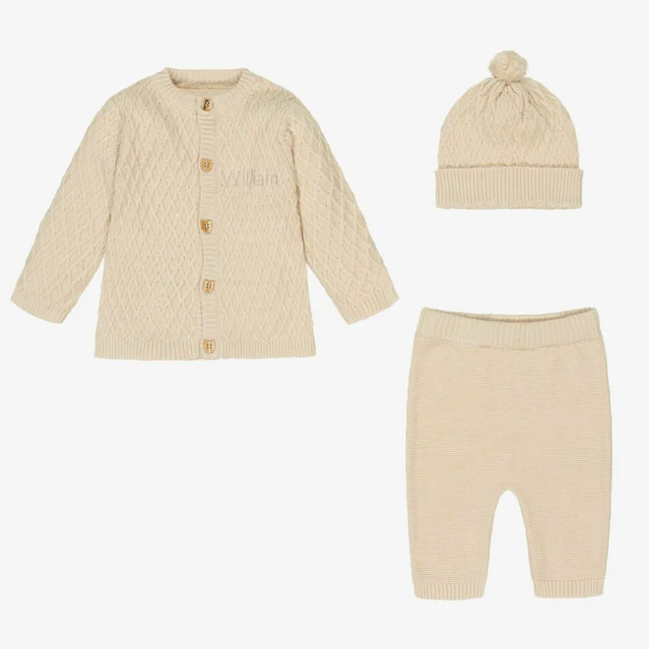 A delightful personalised hamper for baby boys and girls by The Baby Gifting Company. A thoughtful festive gift, this beautifully presented set includes a cuddly Christmas-themed teddy bear, natural wooden hairbrush and soft hooded towel, with fun 3D ears. Adding those luxurious touches, the cashmere blanket and hat have a cable knit design and the three-piece outfit is knitted in soft organic cotton. This charming gift is complete with wooden blocks to showcase baby’s precious milestones.