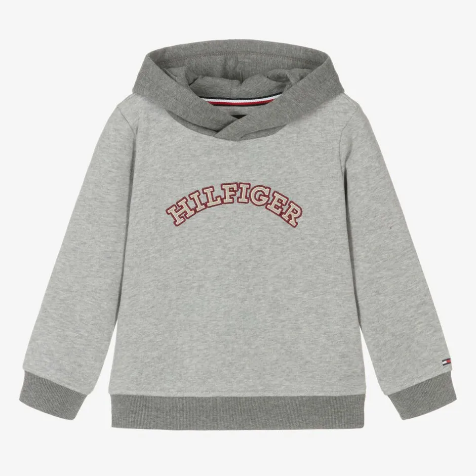 Tommy Hilfiger Boys Grey Varsity Logo Cotton Hoodie Discount