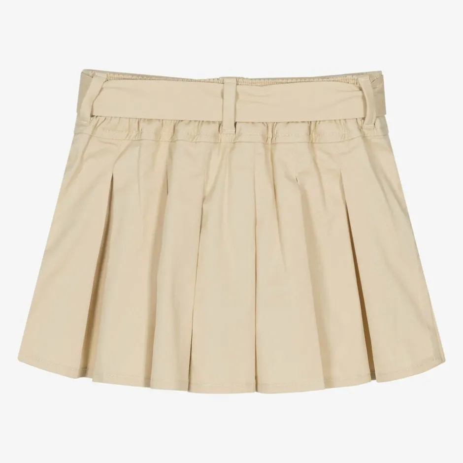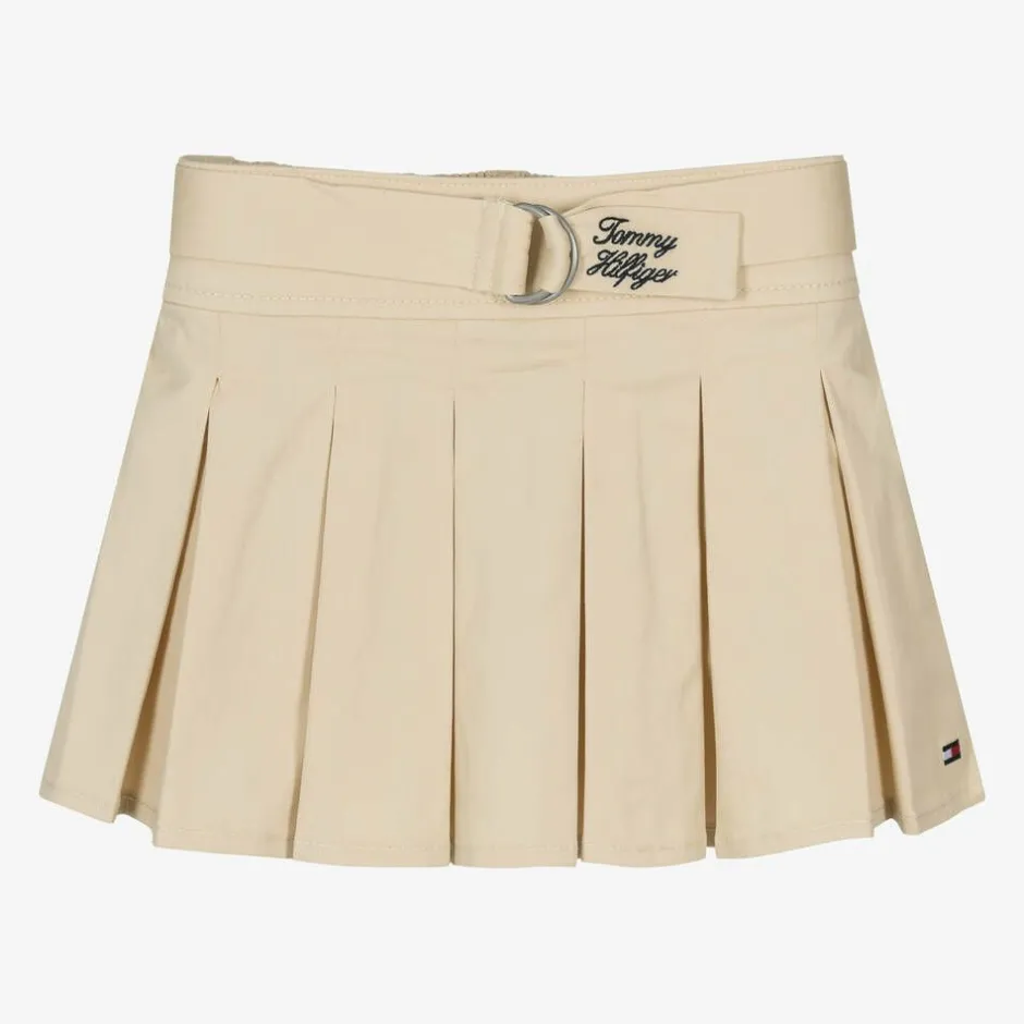 Tommy Hilfiger Girls Beige Cotton Pleated Skirt Outlet