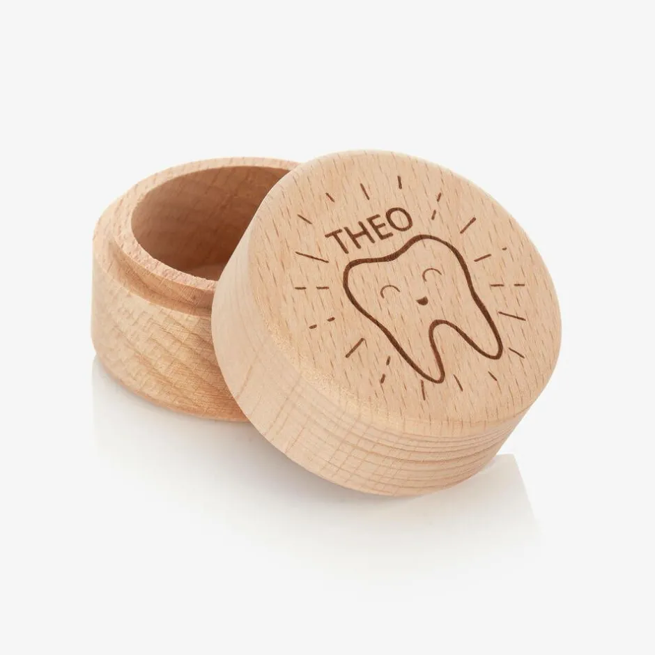 Cute wooden tooth fairy box for little boys and girls, handmade by gifting brand Treat Republic. Lovely as a gift for a new parent or for early birthdays, this tiny box allows your little one's teeth to be kept in a safe place to prevent them from getting lost. Showing a happy, smiling tooth on the front, their name can be personalised to add a thoughtful finishing touch to this adorable keepsake.