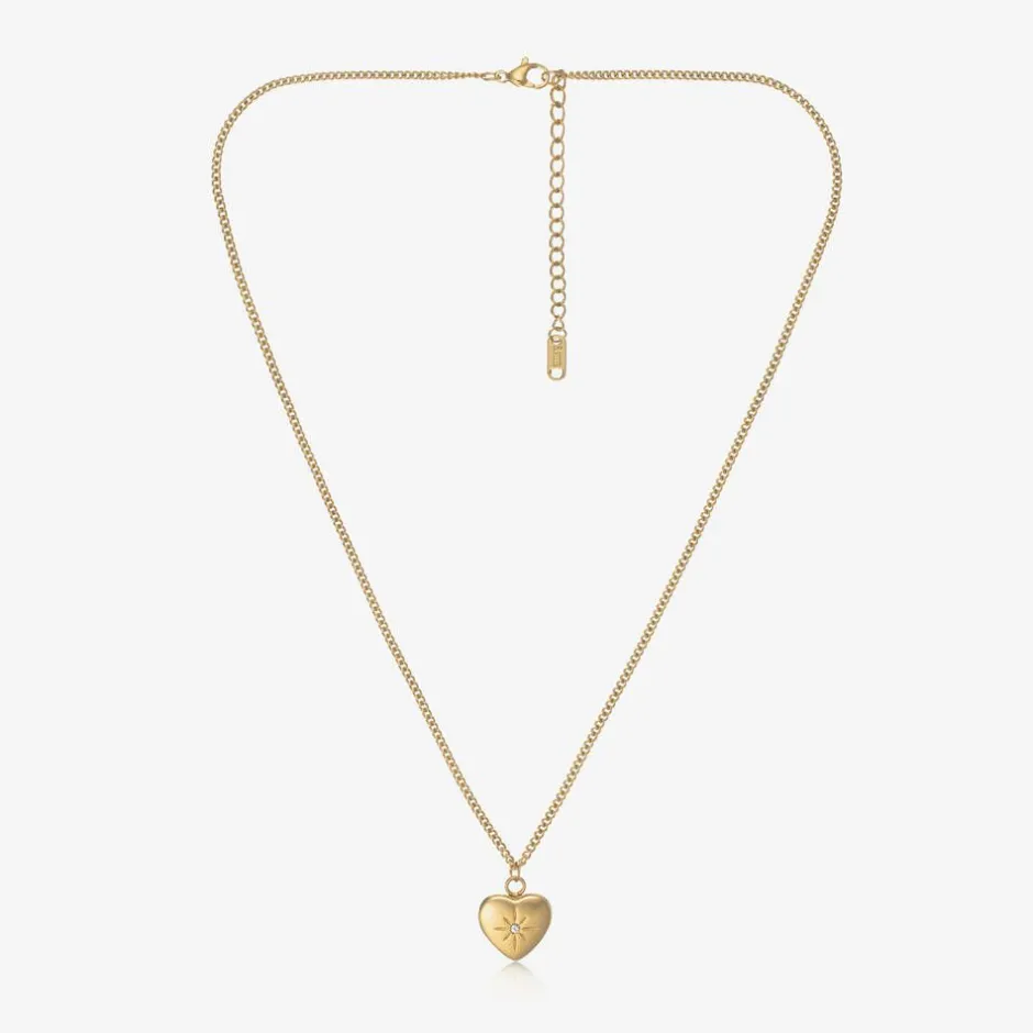 Gold plated necklace for boys and girls by Treat Republic, ideal as a gift. The heart-shaped pendant can be thoughtfully engraved with their name and a message or date of your choice, personalising the jewellery with a sentimental memory. The other side of the pendant has an engraved celestial star and diamanté in the centre. The adjustable chain allows it to be worn at different lengths as your child grows.