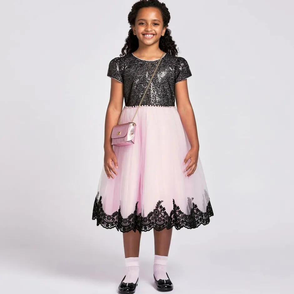 Beautiful metallic pink bag for girls by Italian brand Zaccone, in grained faux leather. Lovely for accessorising a special occasion outfit, it has a leather-lined main compartment with a gold twist clasp fastening on the front. The bag is worn using the gold chain shoulder strap, with sparkly diamanté's decorating the eyelets.
