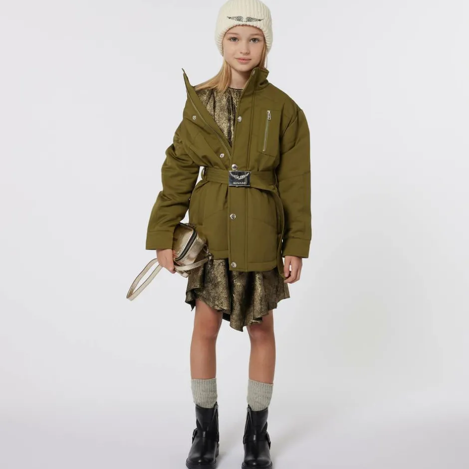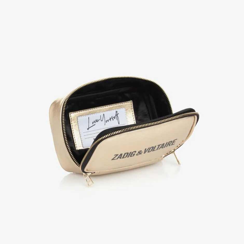 Super versatile gold bag for girls by Zadig&Voltaire, with many styling options. Using the panel on the back, it can be worn as a belt bag, or by attaching the adjustable strap it can be quickly converted into a cross-body bag or a shoulder bag in either vertical or horizontal positions. It is made in soft faux leather with a satin lining, and opens fully with a two-way zip.